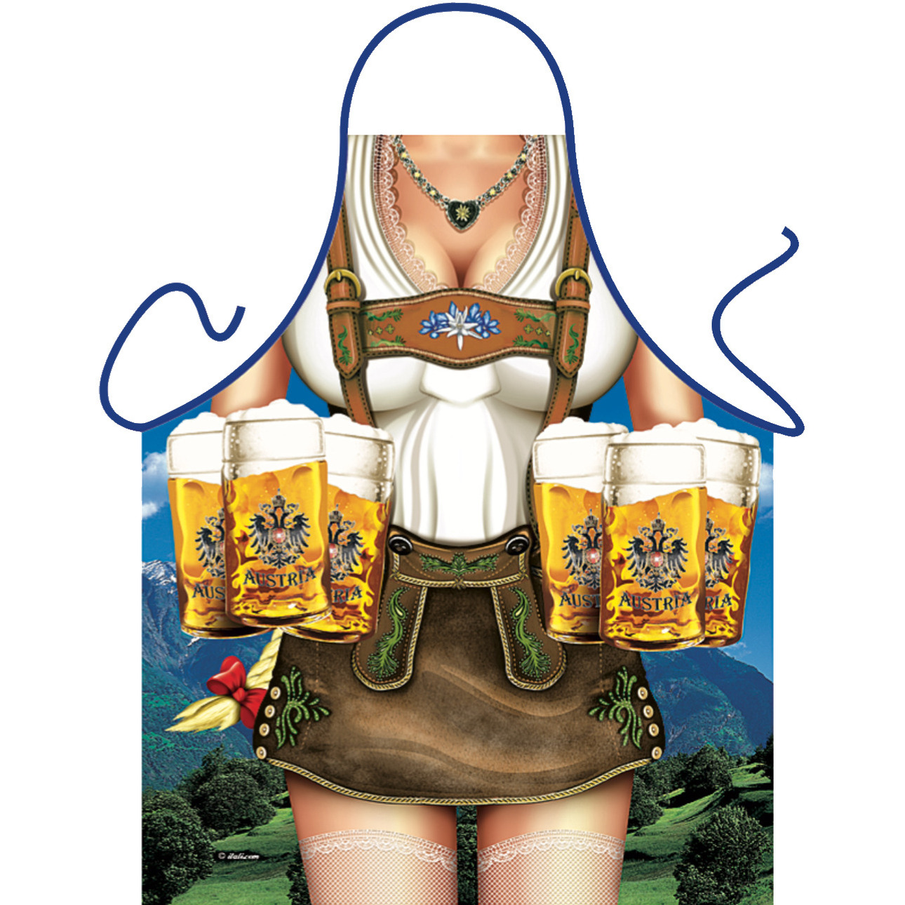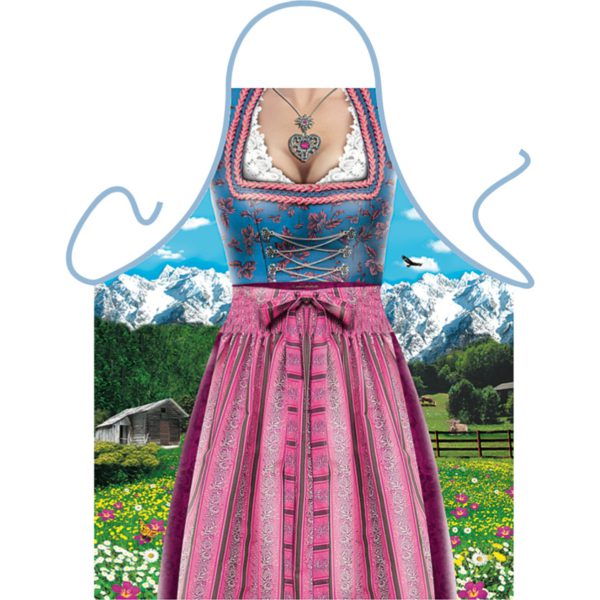 Sexy kookschort Tirolerin. Tiroler schort voor dames gemaakt van mooie kwaliteit bedrukking in prachtige kleuren. Dit sexy tiroler schort is gemaakt van 100% polyester. Wasbaar tot ongeveer 50 graden. Lengte: 94 cm, breedte: 57 cm.